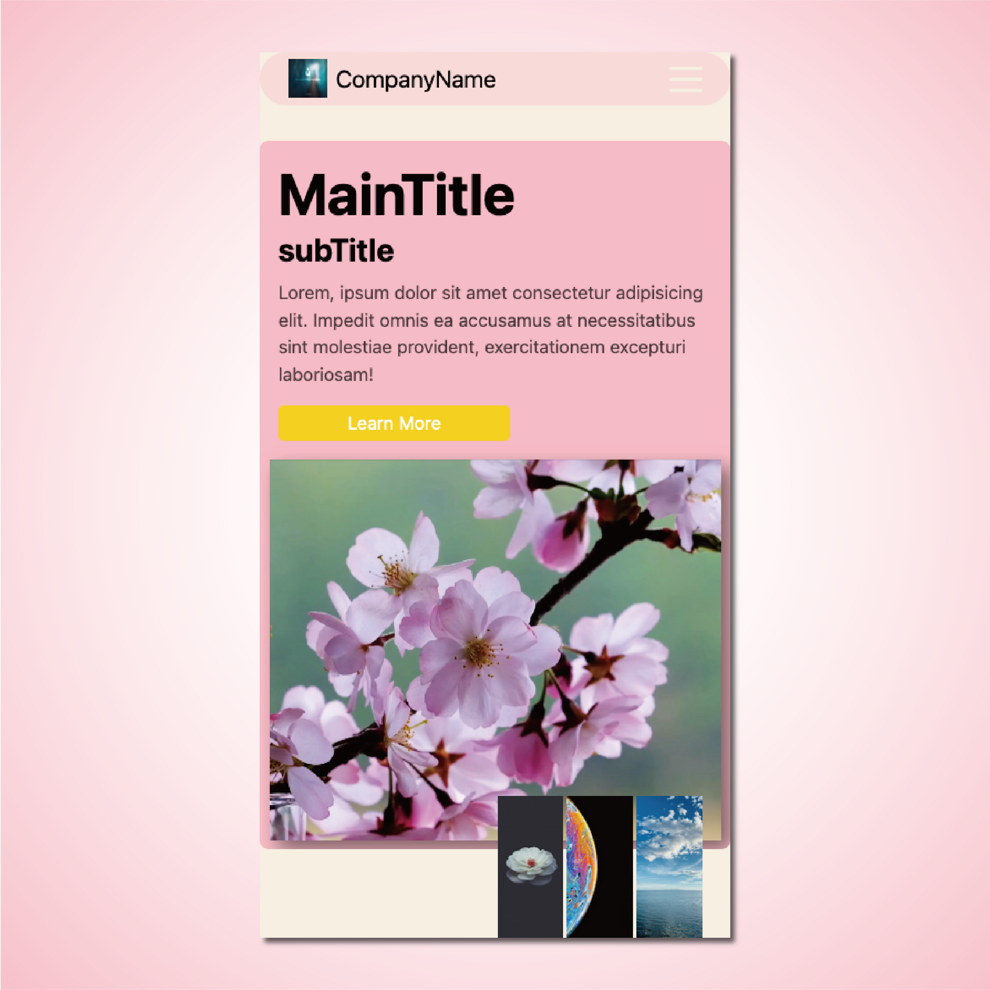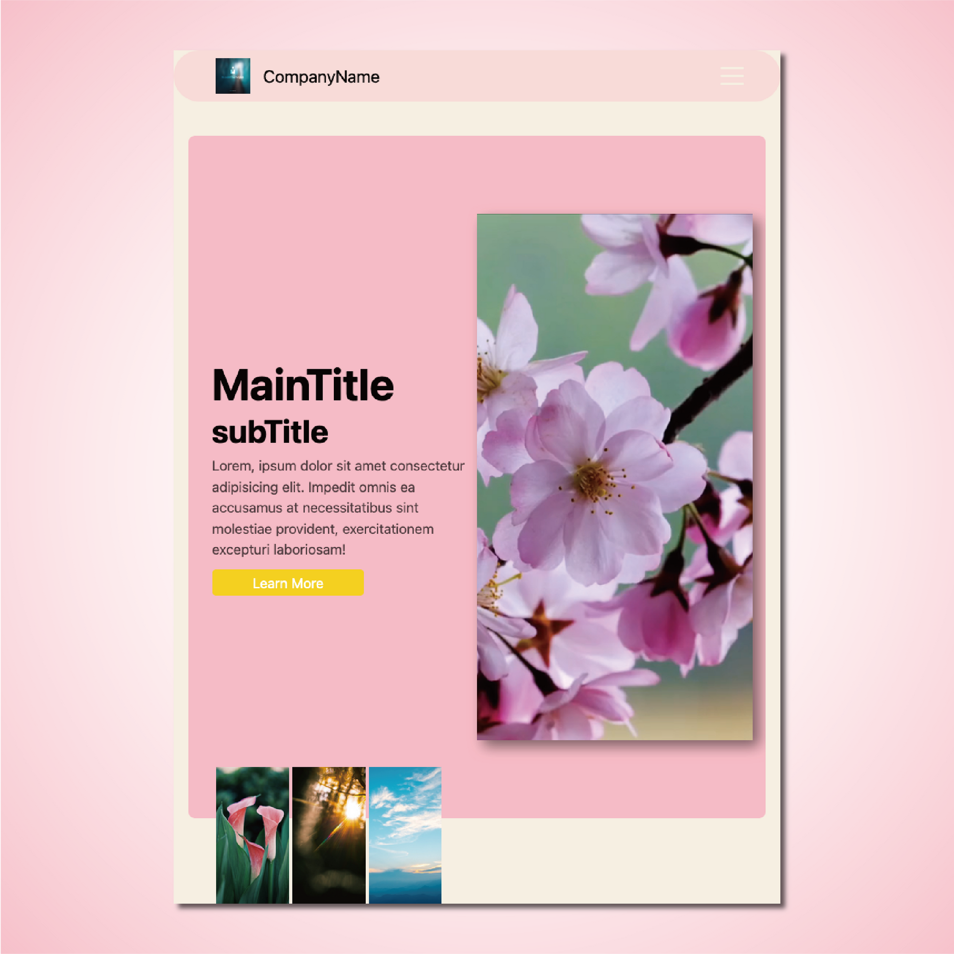 - Background and color palette: A soft pink base with natural tones.