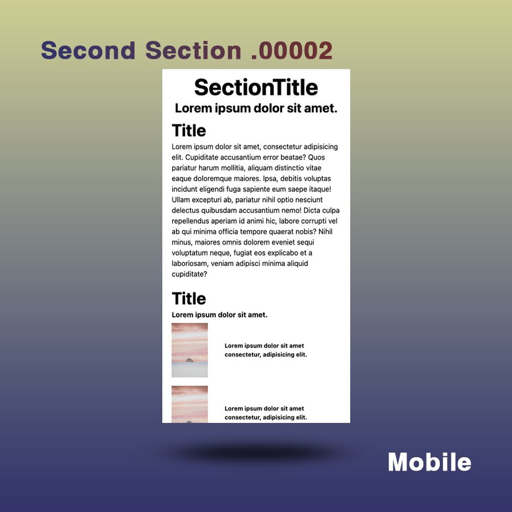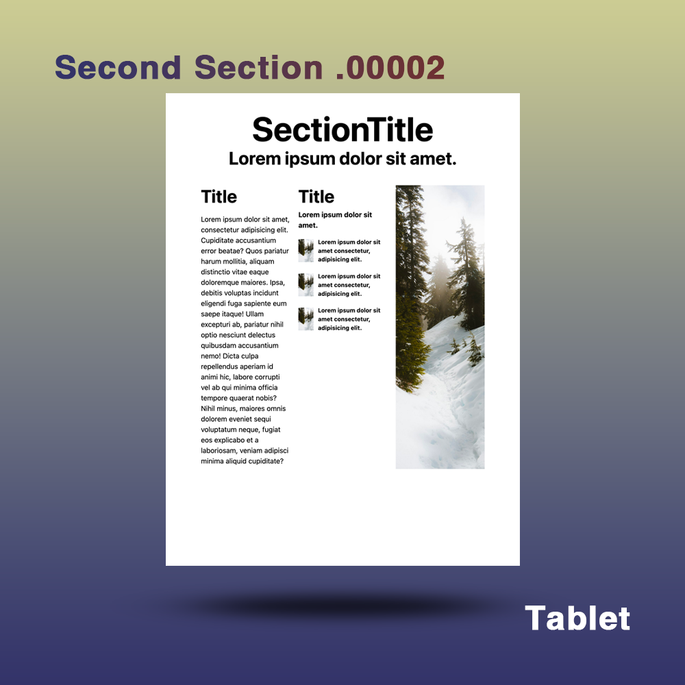 - メインタイトル、セクションタイトル、サブタイトル、テキスト、画像の組み合わせで情報を提供。