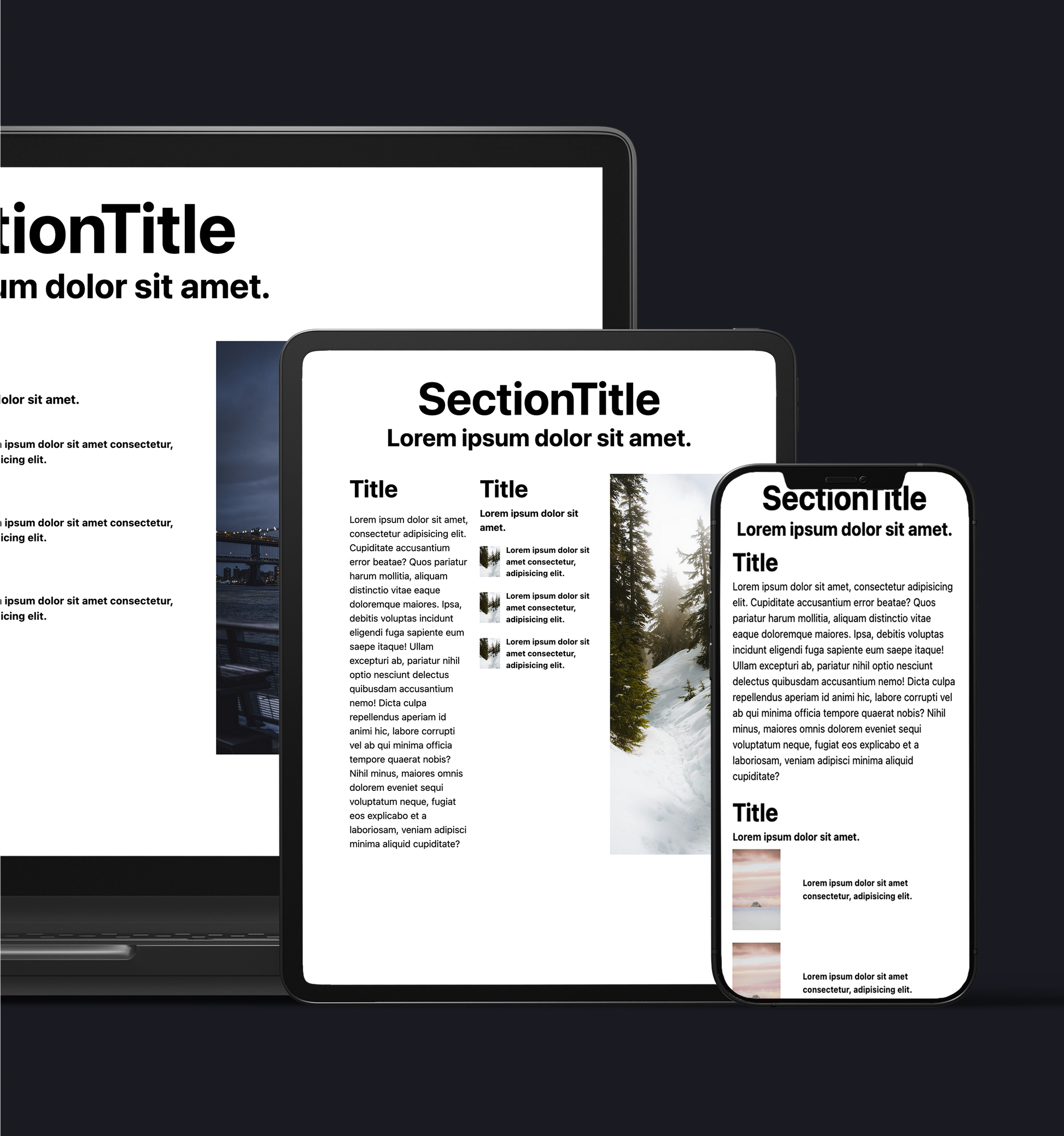 - 各デバイス(デスクトップ、タブレット、モバイル)に対応したレイアウト。
