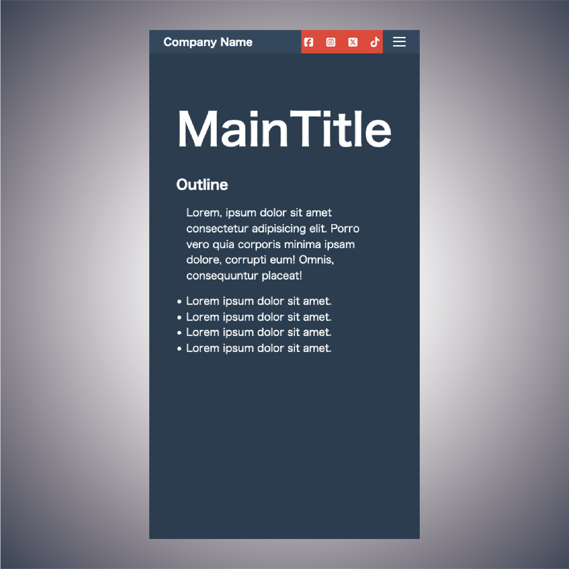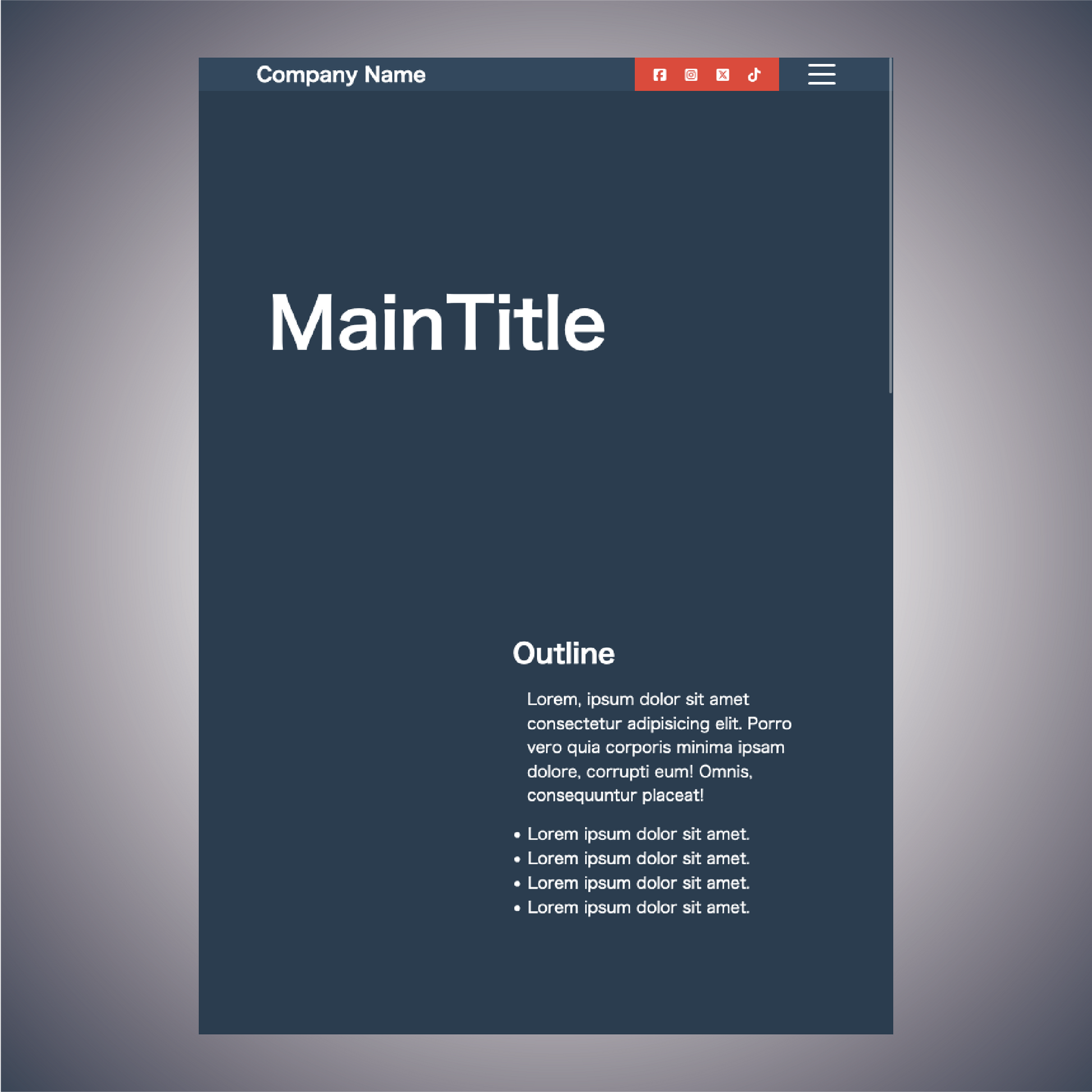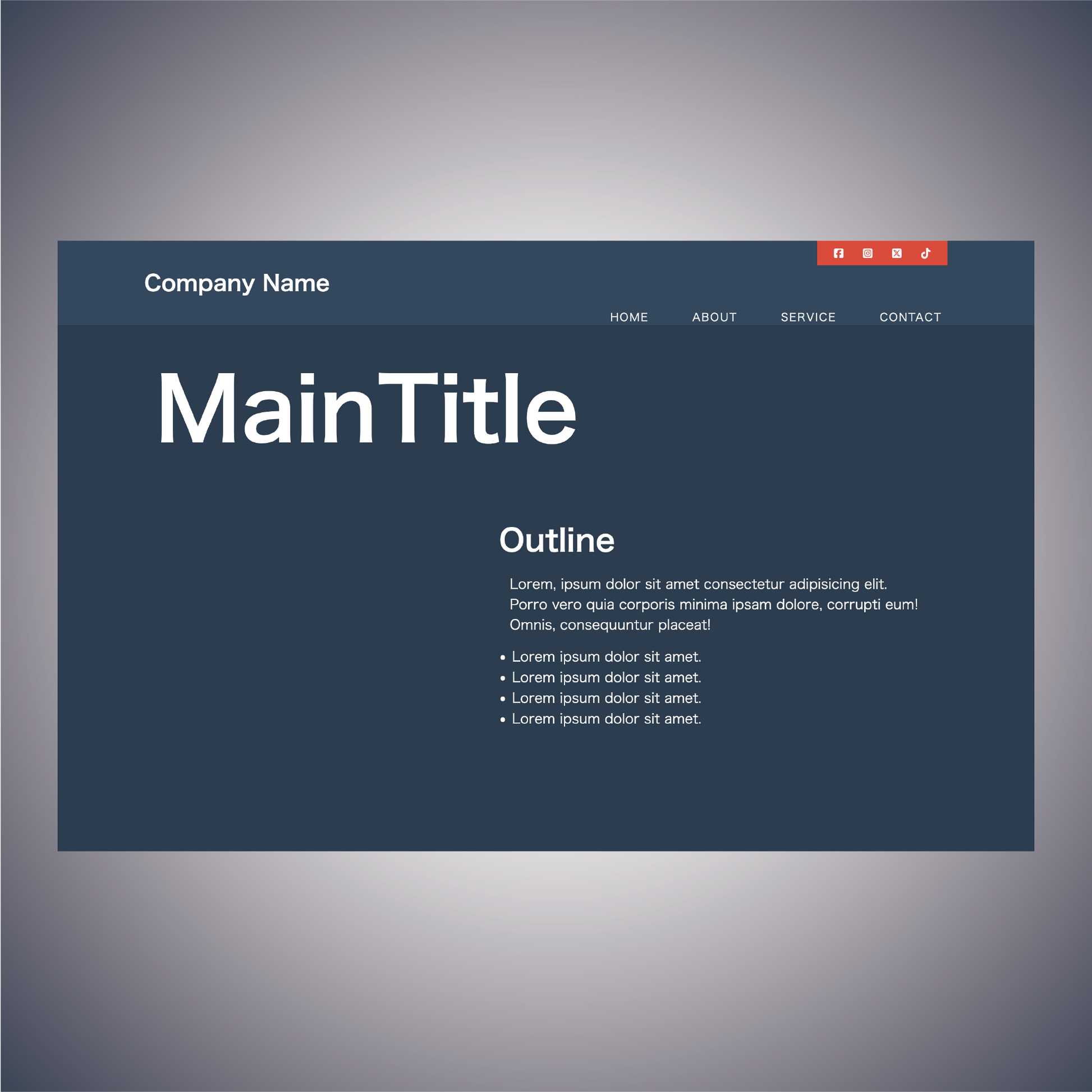 - アイコン: SNSのアイコンを目立つ場所に配置し、スタイリッシュにデザイン。